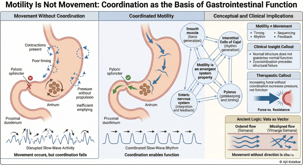 Motility is a coordinated process that depends on timing, rhythm, sequencing, and feedback. When we reduce it to movement alone, we miss the essence of how the gut actually functions.